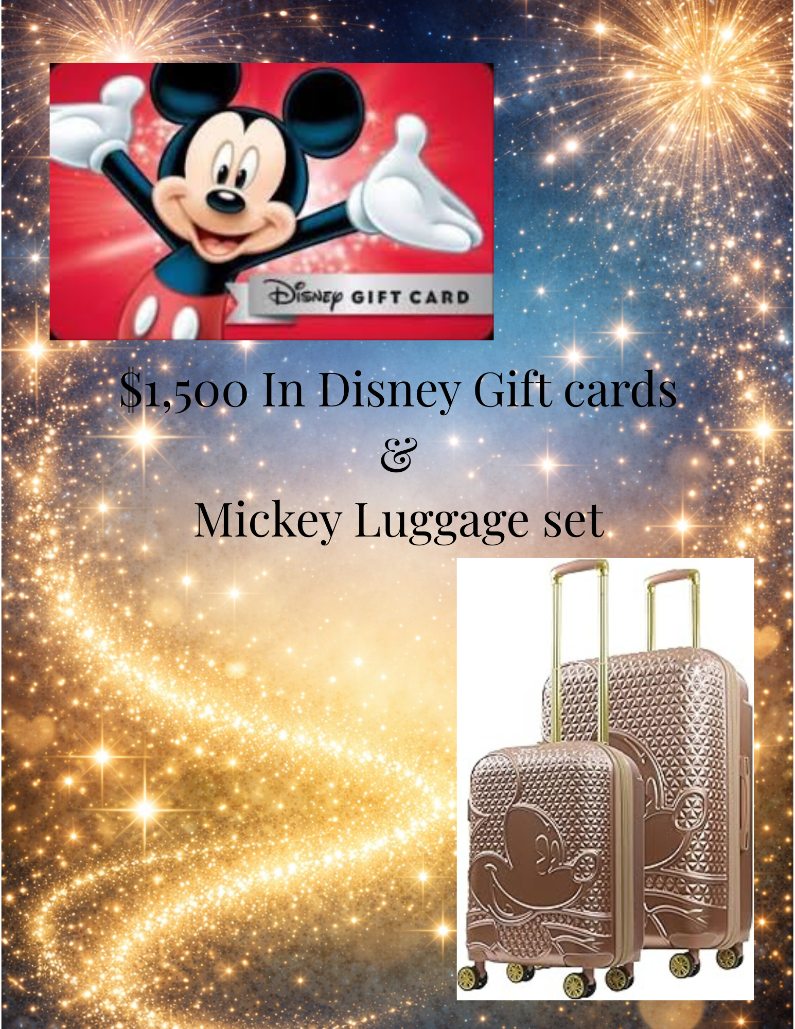 Winner receives $1,500 in Disney gift cards and 2 piece Mickey Luggage set